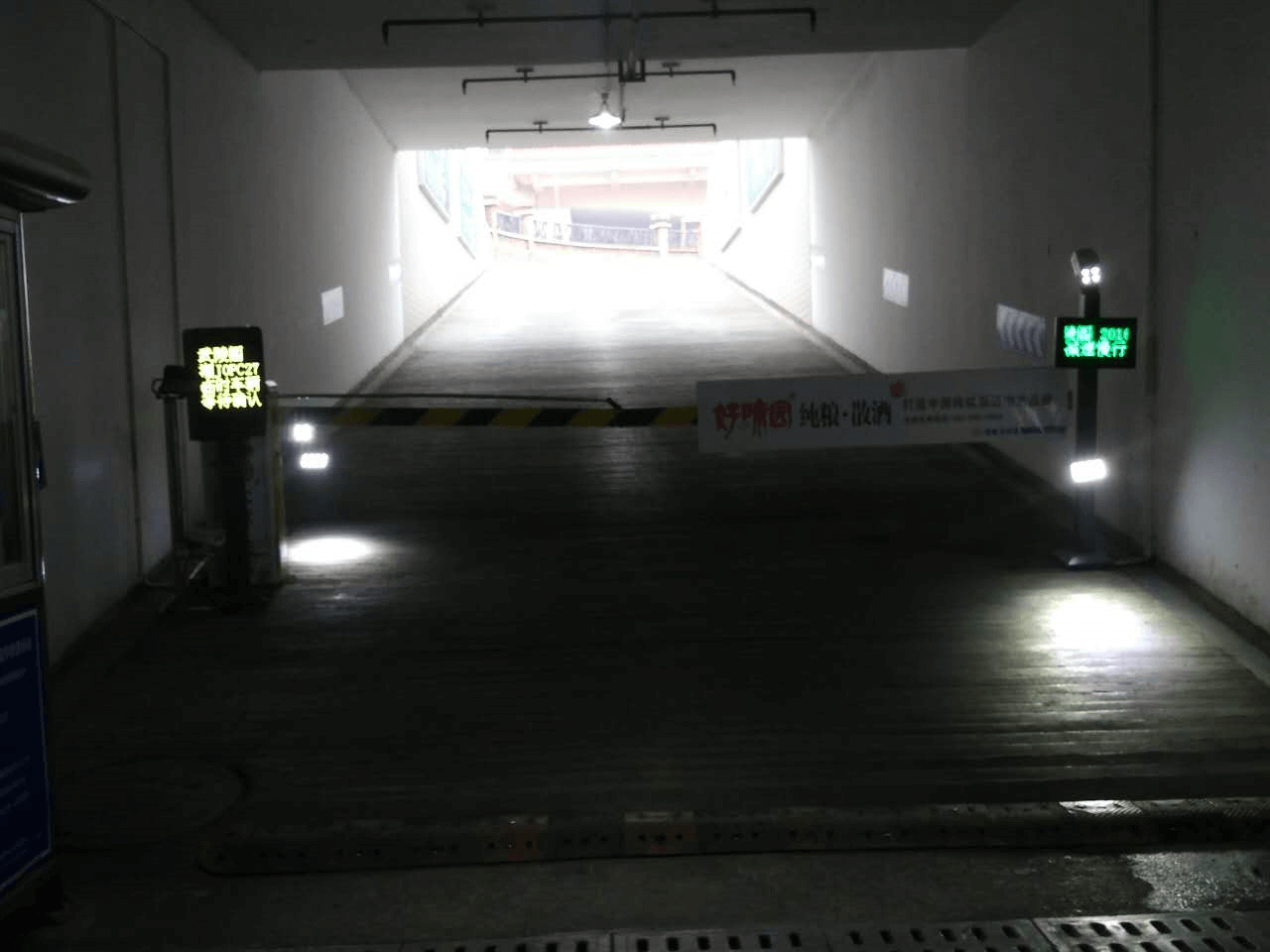 去現場觀察,主要是要注意車道的長寬和來車方向. 車道的寬度盡量控制在4米內,大于4米的要擺放隔離樁限制;長度至少要有6米,太短會造成車牌識別不正,就像下圖這樣,車遷直時攝像機已經看不到車牌了.
