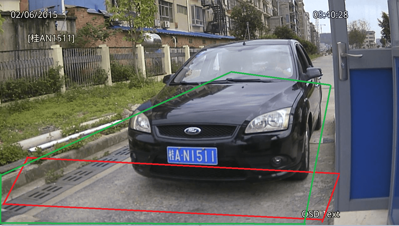 識別區域要把車牌在畫面上的有效運動范圍都包含進來. 注意:所有現場都必須畫上識別區域! 如圖: